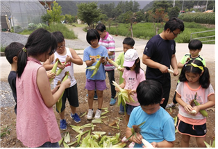 마을을 돌아보며 옥수수 수확을 해서 직접 캔 옥수수도 삶아 먹어보고
