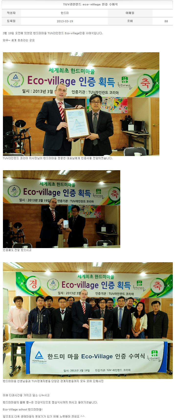 TUV라인란드 eco-village 인증 수여식 2013-03-19