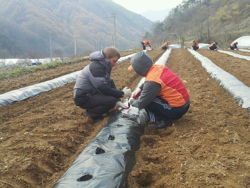다들 함께 자원봉사로 한드미마을 밭일을 도와주셨답니다.