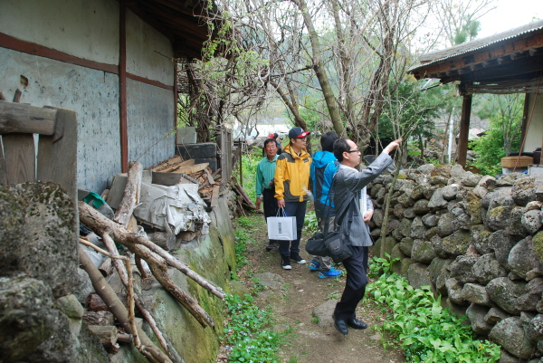 설명을 들으시는 표정도 진지하십니다. 이쪽저쪽 열심히 한드미마을에 관해서 설명중이신 놀이샘~