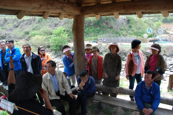 권역단위 사업을 준비하시는데 저희 한드미마을 견학이 많은 도움이 되셨으면 좋겠네요. 자 마을투어를 시작합니다.~ 씌원한 빨래터 구경도 하시고 느티나무를 유심히 살펴보시는중이십니다. 한드미농촌유학센터에 관한 놀이샘의 설명이 이어집니다. 마을 돌담길도 둘러보시고 점심식사 후에는 계곡가 탁자에서 담소도 나누시고