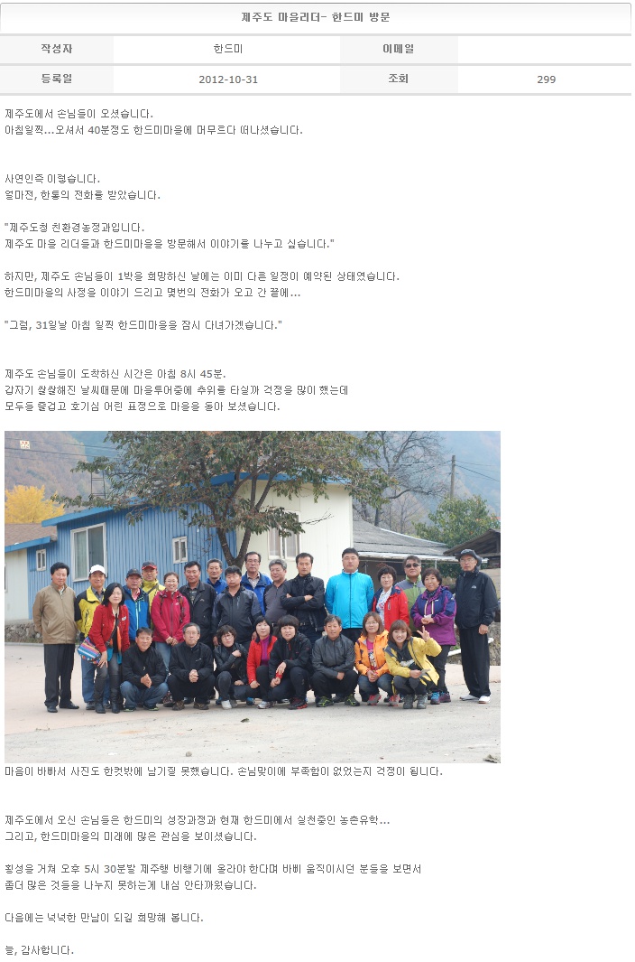제주도 마을리더- 한드미 방문 2012-10-31