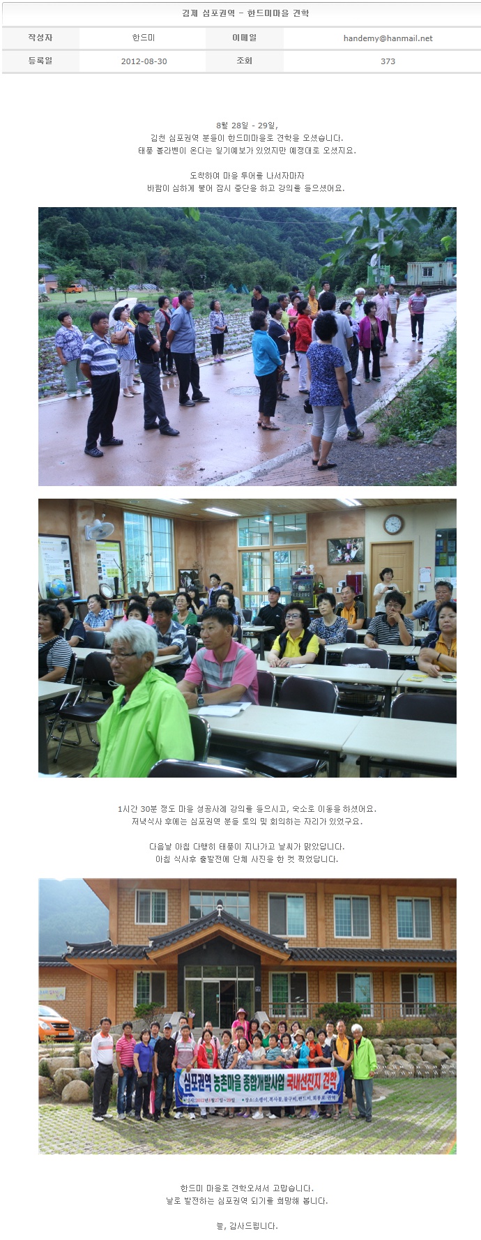 김제 심포권역 - 한드미마을 견학 2012-08-30