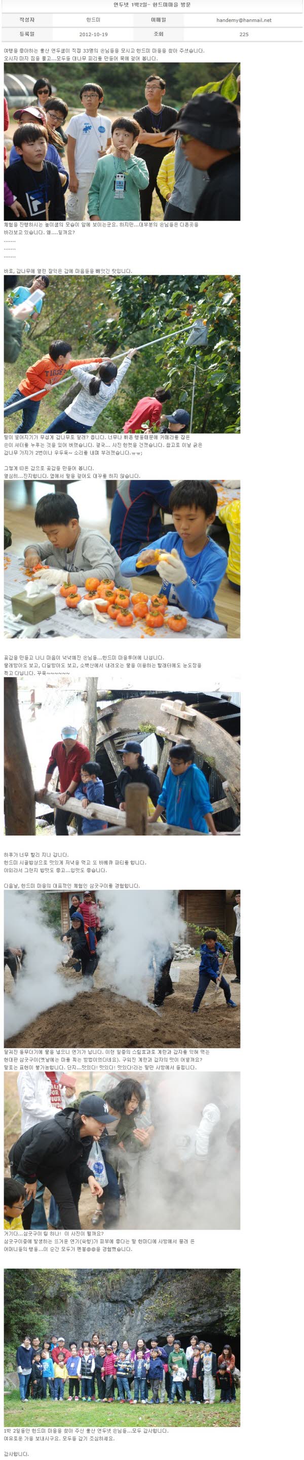 연두넷 1박2일- 한드미마을 방문 2012-10-19