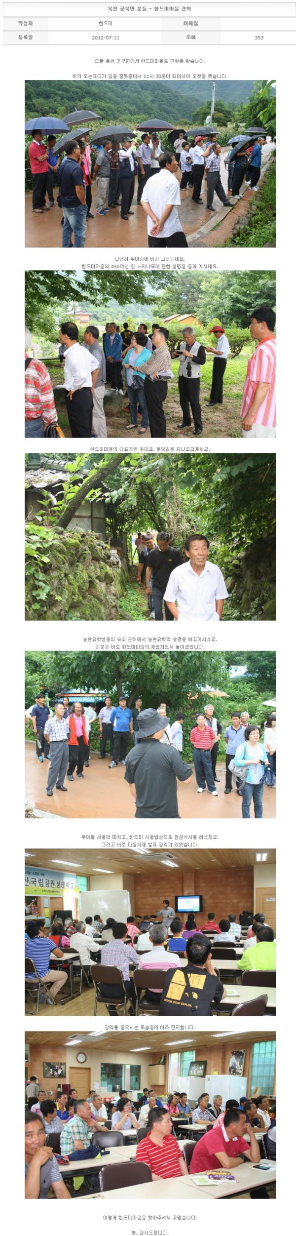 옥천 군북면 분들 - 한드미마을 견학 2012-07-11