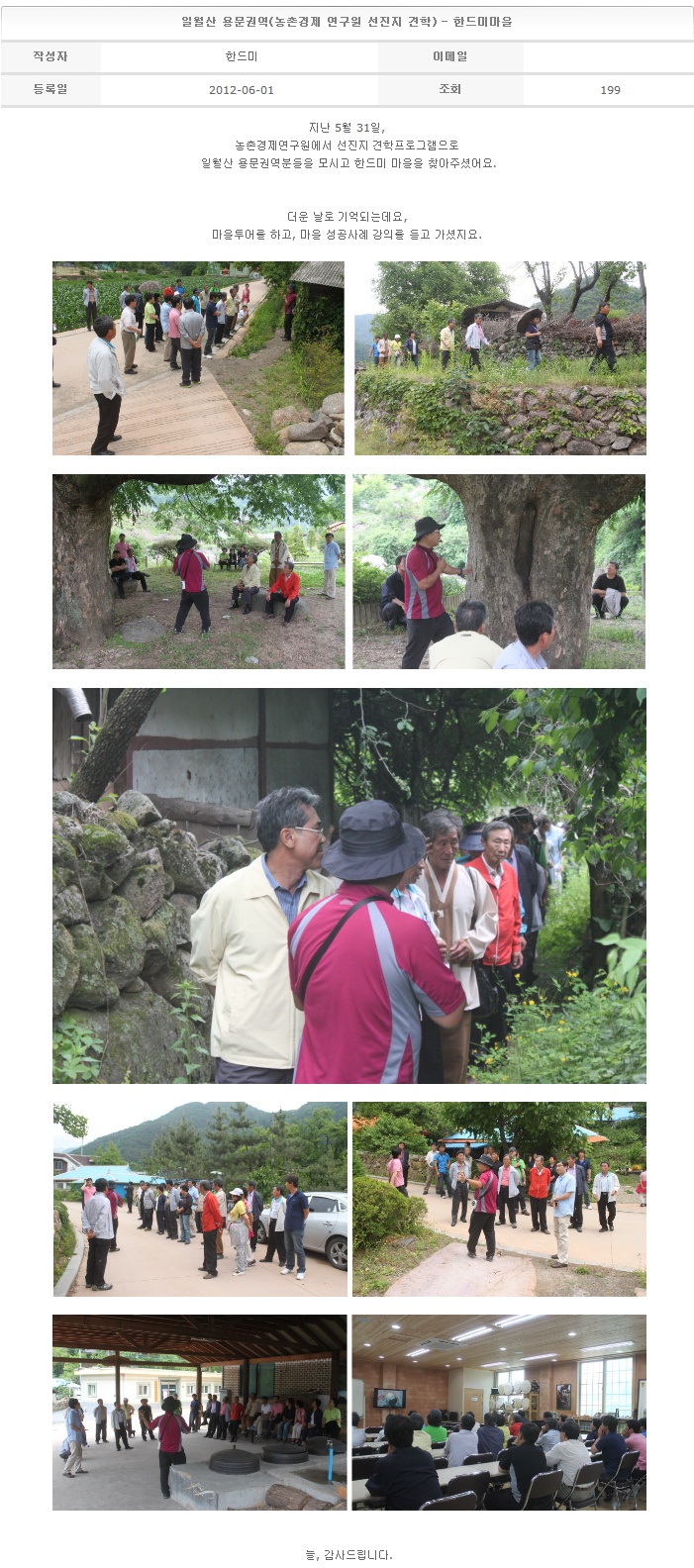 일월산 용문권역(농촌경제 연구원 선진지 견학) - 한드미마을 2012-06-01