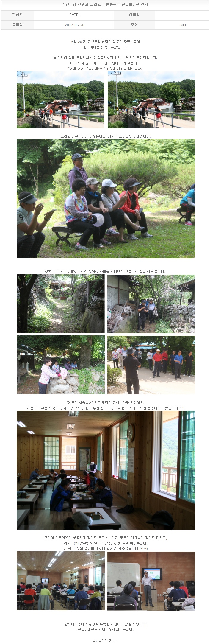 정선군청 산림과 그리고 주민분들 - 한드미마을 견학 2012-06-20