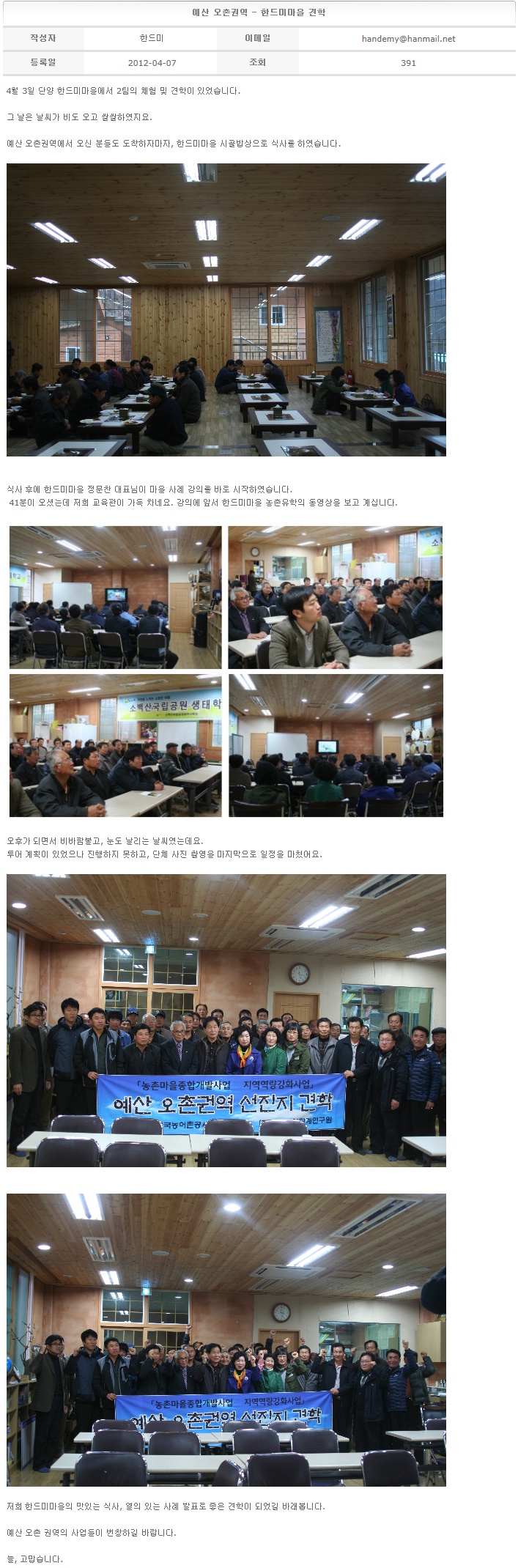 예산 오촌권역 - 한드미마을 견학 2012-04-07