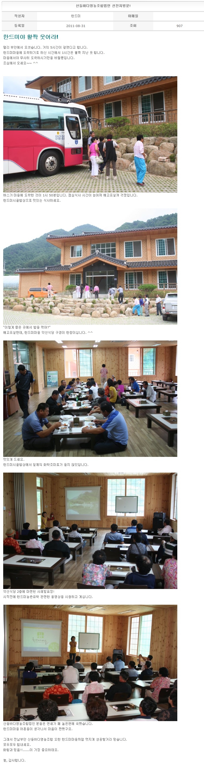 산들바다영농조합법인 선진지방문! 2011-08-31