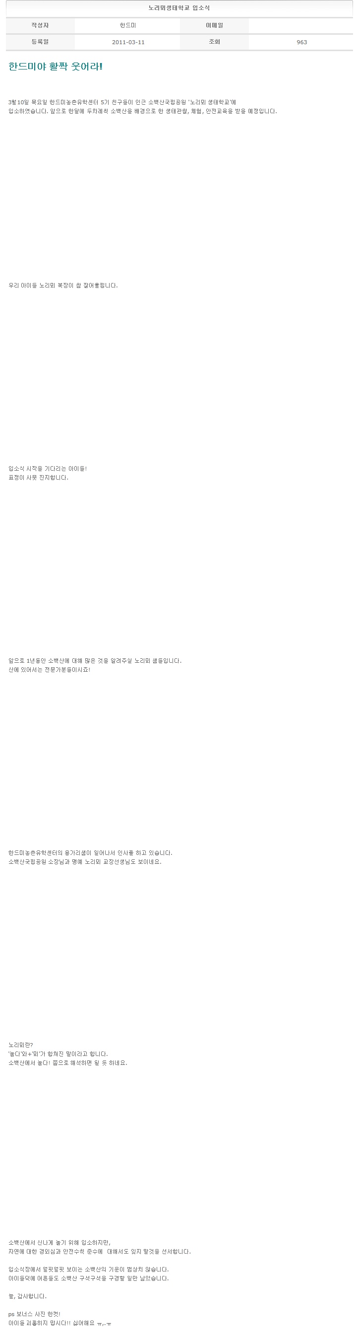 노리뫼생태학교 입소식 2011-03-11