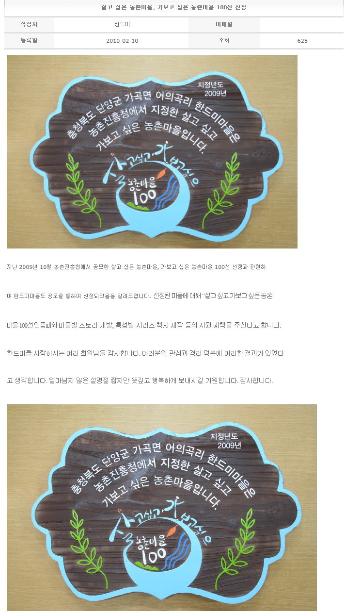 살고 싶은 농촌마을, 가보고 싶은 농촌마을 100선 선정 2010-02-10