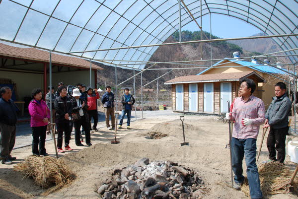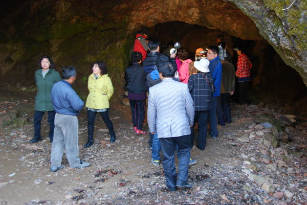 한참 삼굿구이 체험을 하시고나서 고구마와 계란이 익을동안 한드미 동굴을 둘러보러 오셨습니다. 동굴앞에서 단체사진 찰칵~ 계란도 먹고 고구마도 먹고~ 저도 맛있는 고구마 먹느라 정신이팔려서 정작 사진은 제대로 못찍었네요 ㅠ_ㅠ 삼굿구이체험도 끝나고 점심식사를 마치신후엔 대표님의 명강의 시간이~