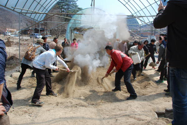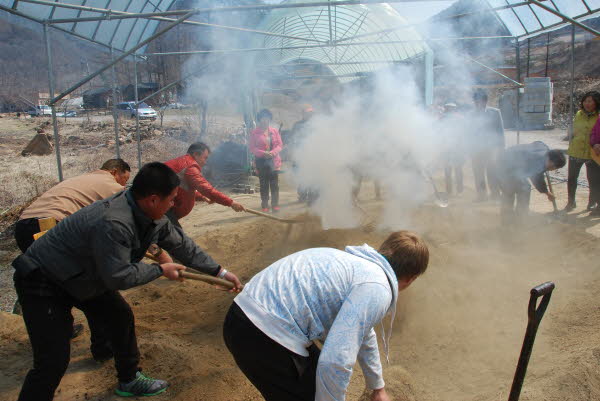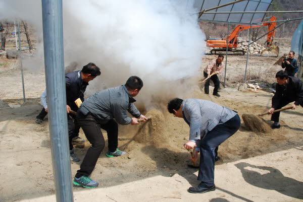 물을 한번 부을때마다 화끈하게 치솟는 수증기들위로 흙을 덮느라 바쁜 대학찰옥수수권역분들