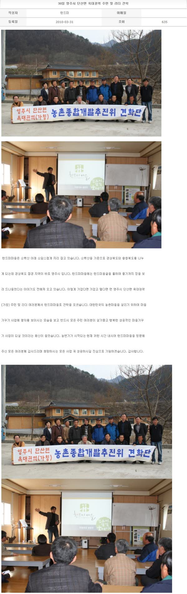 30일 영주시 단산면 옥대권역 주민 및 리더 견학 2010-03-31