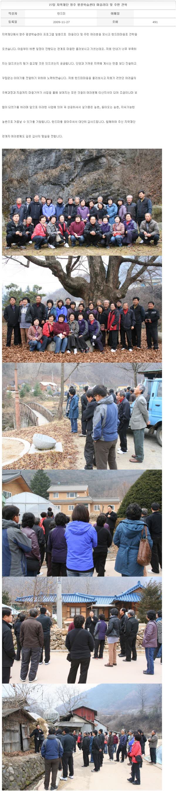 27일 지역재단 영주 평생학습센터 마을리더 및 주민 견학 2009-11-27