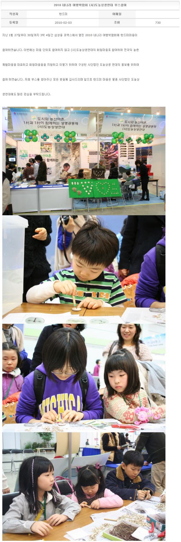 2010 내나라 여행박람회 (사)도농상생연대 부스참여 2010-02-03