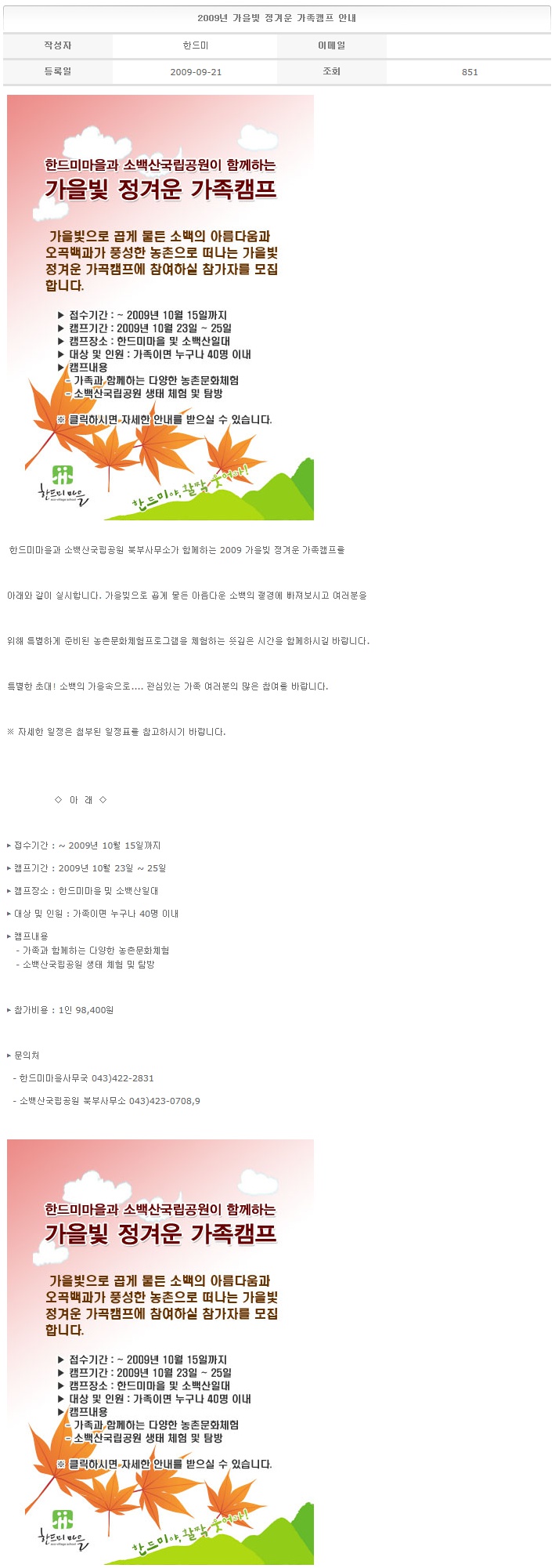 2009년 가을빛 정겨운 가족캠프 안내 2009-09-21