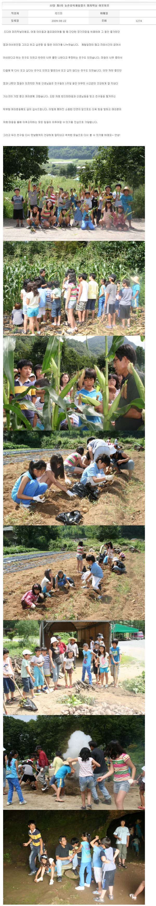 22일 제2차 농촌유학체험캠프 마지막날 이모저모 2009-08-22