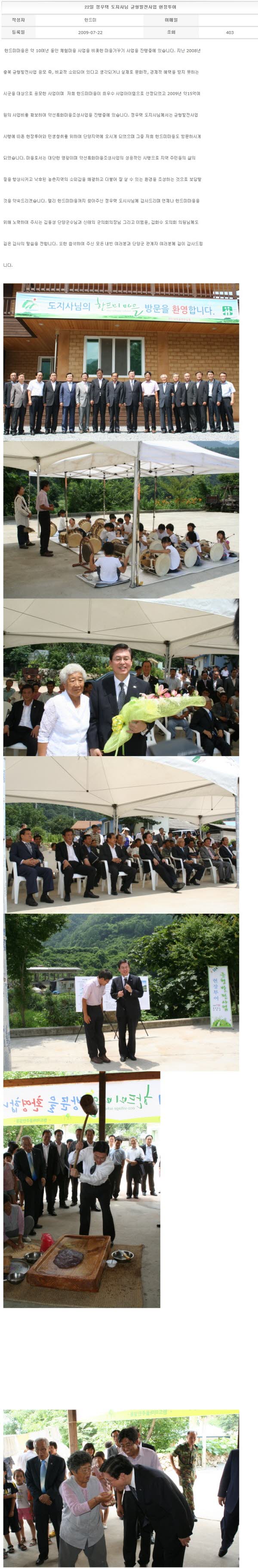 22일 정우택 도지사님 균형발전사업 현장투어 2009-07-22