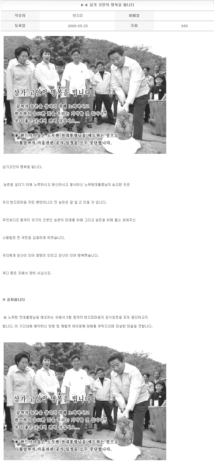 ▶◀ 삼가 고인의 명복을 빕니다 2009-05-25