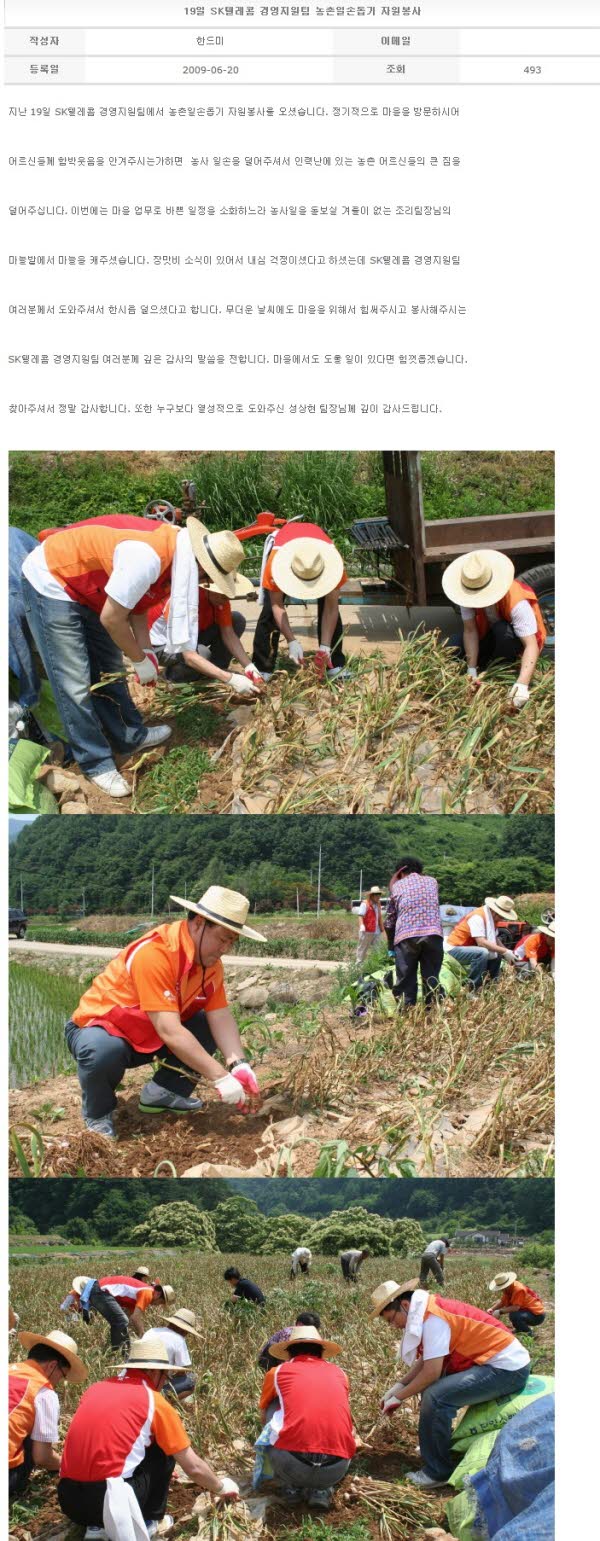 19일 SK텔레콤 경영지원팀 농촌일손돕기 자원봉사 2009-06-20