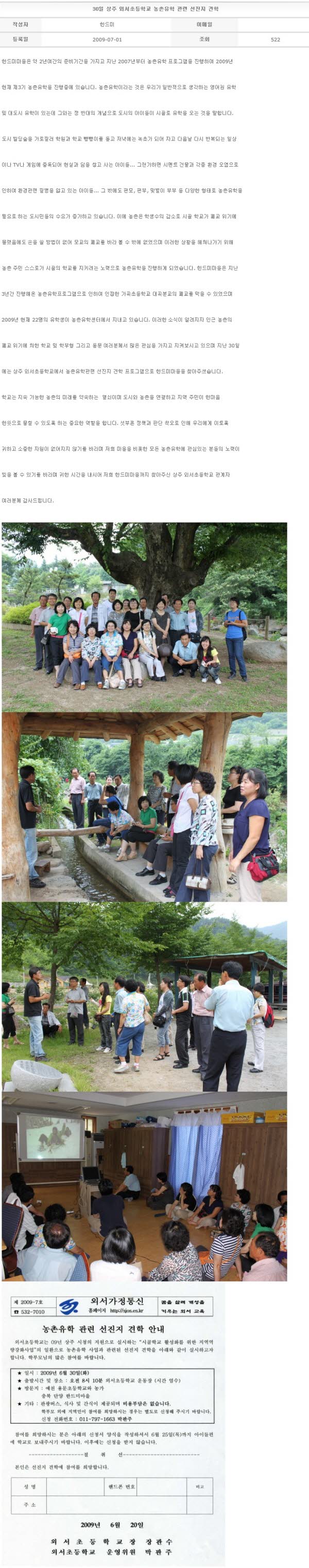 30일 상주 외서초등학교 농촌유학 관련 선진지 견학 2009-07-01