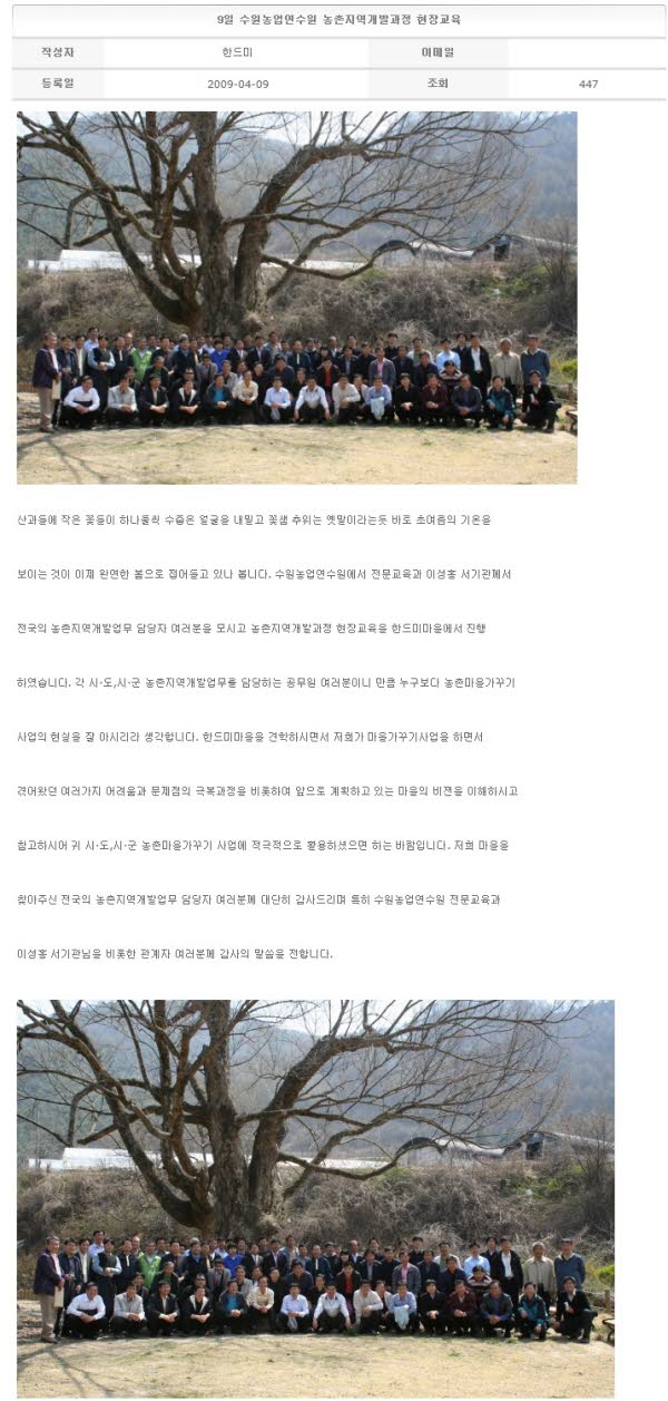 9일 수원농업연수원 농촌지역개발과정 현장교육 2009-04-09