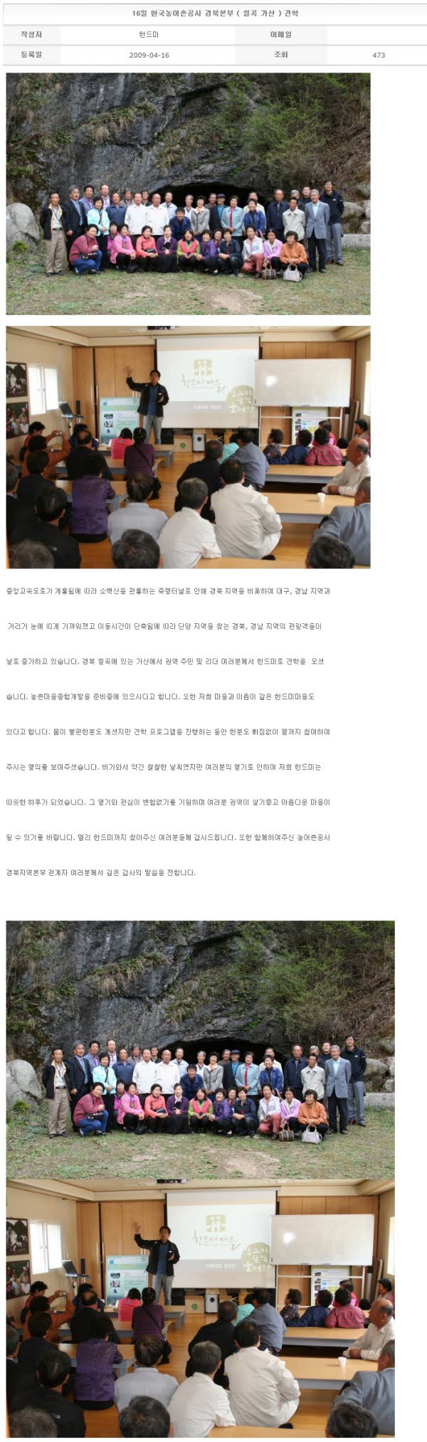 16일 한국농어촌공사 경북본부 ( 칠곡 가산 ) 견학 2009-04-16