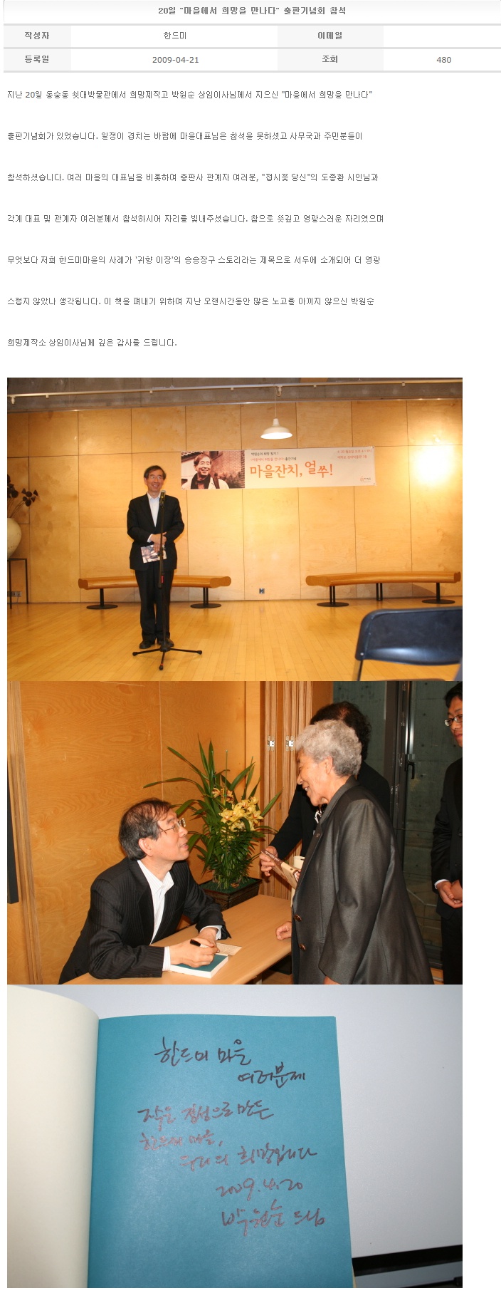 20일 "마을에서 희망을 만나다" 출판기념회 참석 2009-04-21