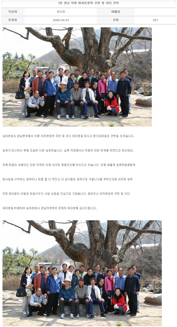 7일 경남 의령 아자촌권역 주민 및 리더 견학 2009-04-07