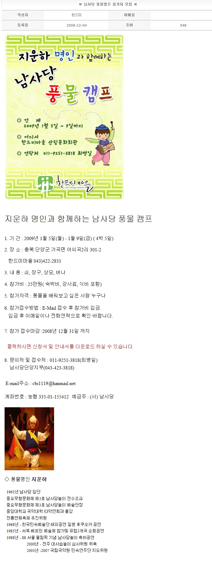 ※ 남사당 풍물캠프 참가자 모집 ※ 2008-12-04