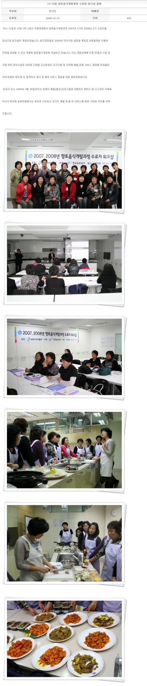 11~12일 향토음식개발과정 수료자 워크샵 참여 2008-12-13