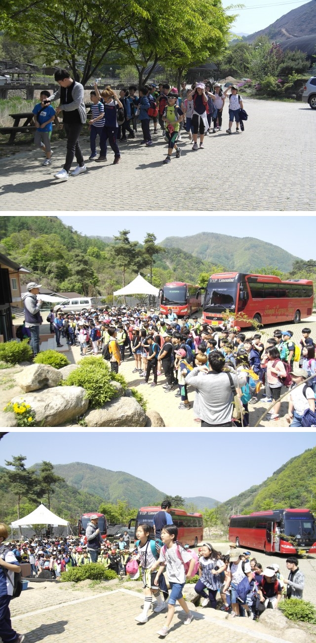 커다란 버스와 함께 남산초등학교 친구들!! 한드미 농촌체험마을로 입성!!ㅎㅎ