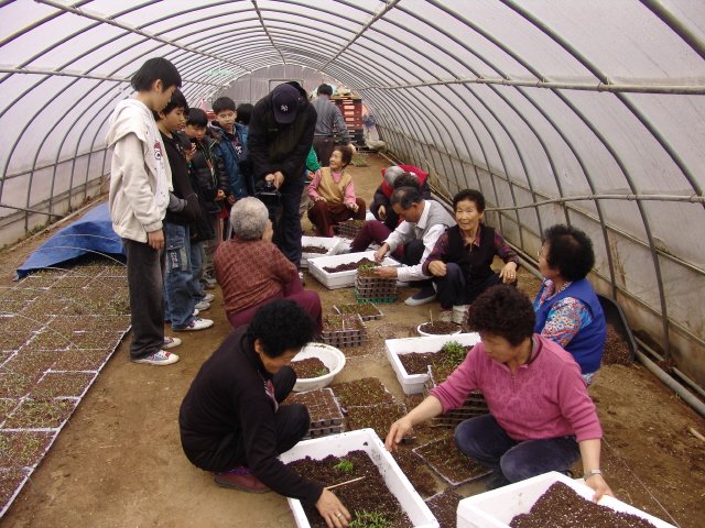 고추묘목 심기와 마을 어른께 인사드리기, 돌무지 체험, 나무공예체험을 하였습니다.