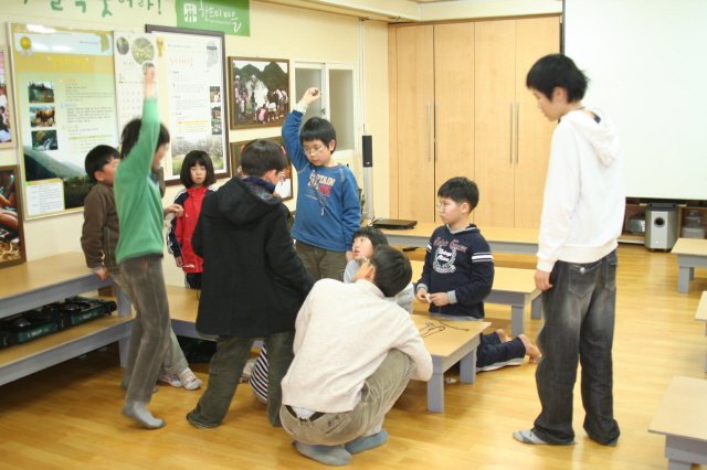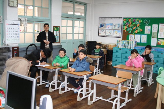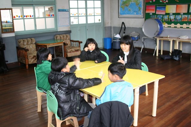 선생님과의 설레는 첫 만남이었습니다. 원주민 학생과 산촌유학생 비율이 5:5정도로
