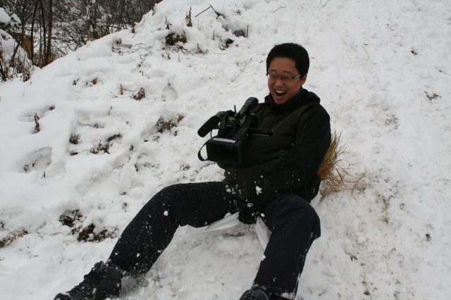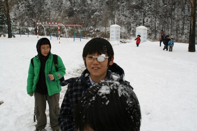 특정치 않은 마구잡이식 눈싸움을 시작으로 동굴 진입로에 있는 전망대 길에서 비료포