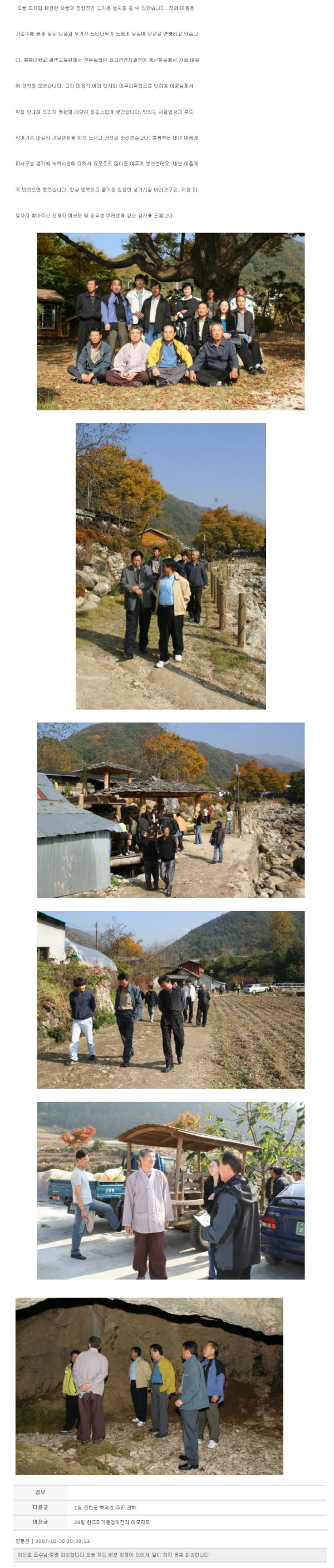 30일 충북대 전문농업인 최고경영자과정 견학 2007-10-30
