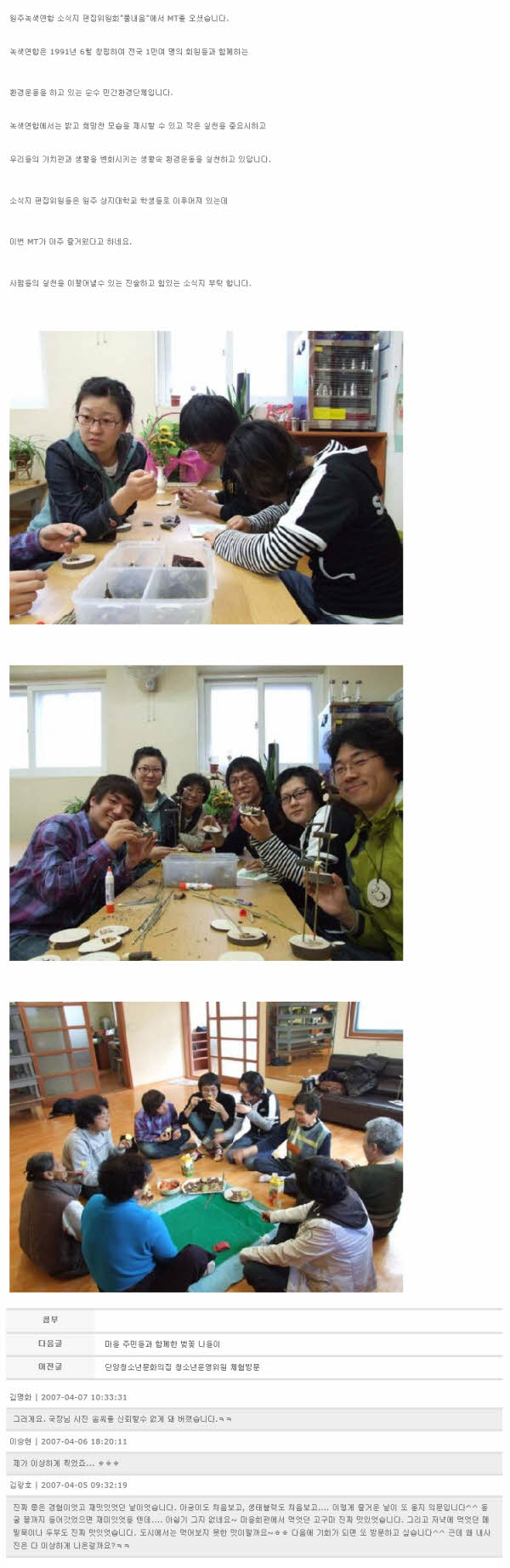 원주녹색연합 소식지 편집위원회 MT 2007-04-03