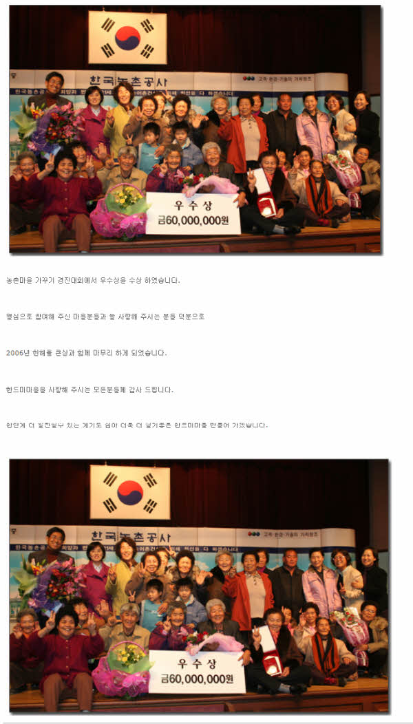 농촌마을 가꾸기 경진대회 우수상 수상 2006-12-14