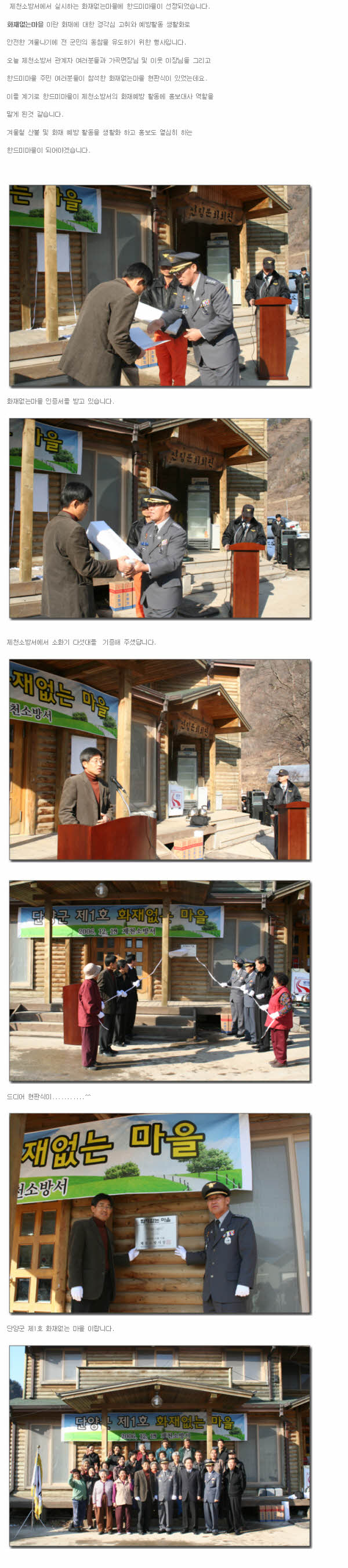 단양군 제1호 화재없는마을 선정 2006-12-19