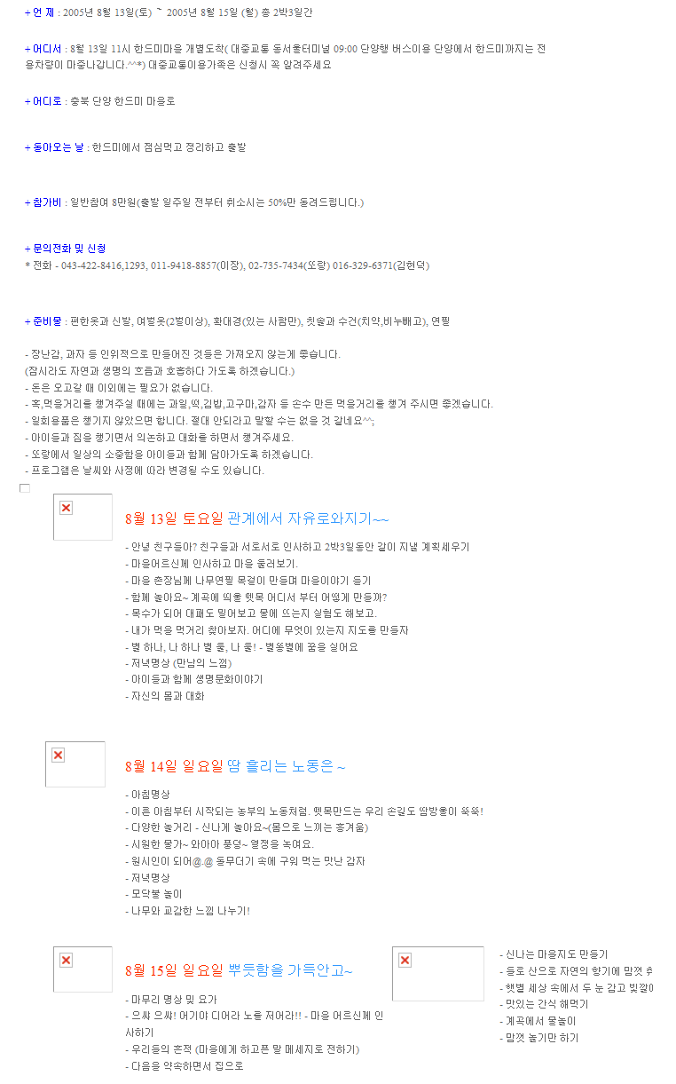 8월13일-15일 한드미 여름캠프 일정입니다 2005-08-07